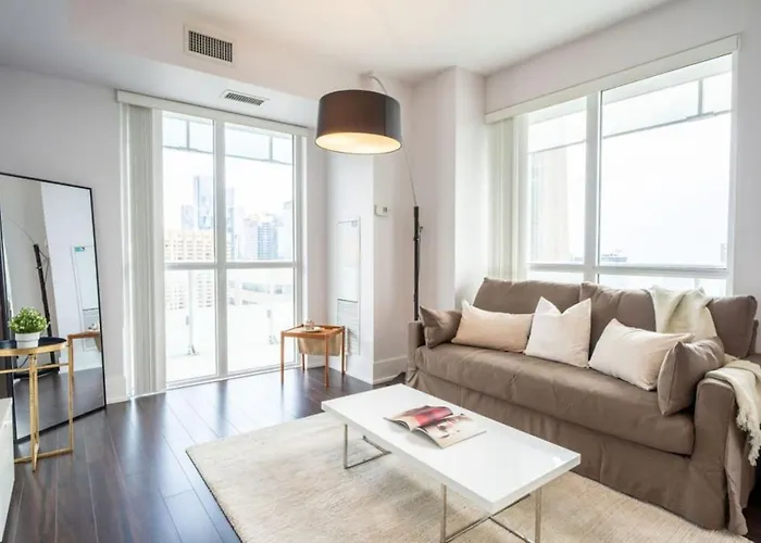 El Salón de la Fama del Hockey está a unos 1 km del apartamento de 102 m², mientras que la Universidad de Ryerson está a 2 km. El apartamento está situado a poco más de 5 minutos a pie del Centro Cultural TIFF Bell Lightbox, no muy lejos de la estación de metro St Andrew. El Luxury Condo With Pool, Cn Tower View, Gym, Workspace se encuentra además a 300 metros de la Torre CN de Toronto.